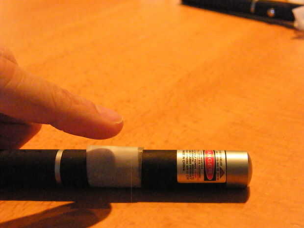 Finalmente deslícelo sobre el puntero láser, que cubre el botón mal.