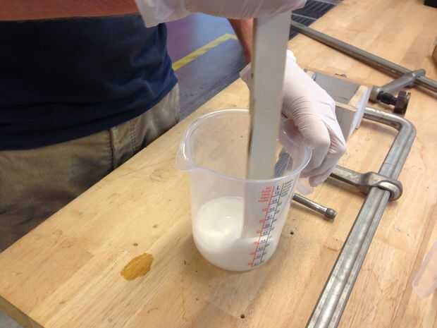 Cuando ambos componentes se miden correctamente al cociente es hora de agregarlos juntos y mezclarlos. Hacer shure a mezclar muy bien. (Fig. 3)