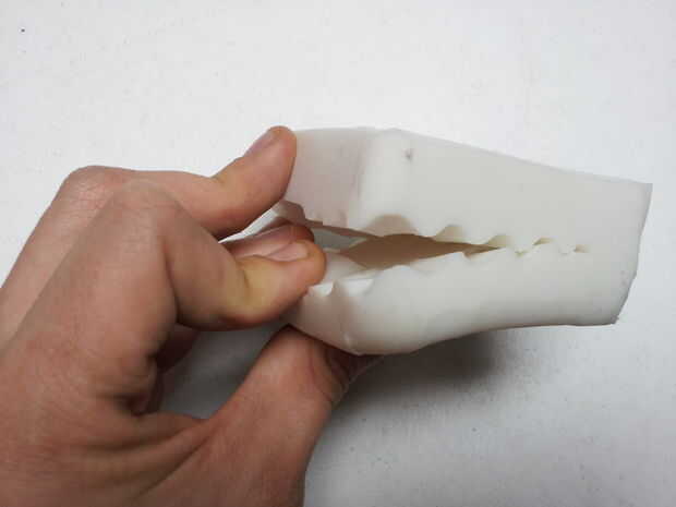 Sólo 3 de las 4 aristas de corte y utilizar líneas curvas y único corte. Esto ayudará el molde a cerrar correctamente. (Fig. 6)
