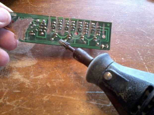 usé mi "circuito rastro goma de borrar" para aislar mis plomos del circuito original. Sólo estoy usando la placa para sostener los componentes perfectamente en su lugar.