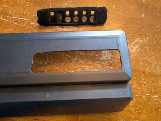 Remonta a mis bordes con una navaja para marcar hacia fuera.  Entonces talló hacia fuera el agujero con la Dremel.