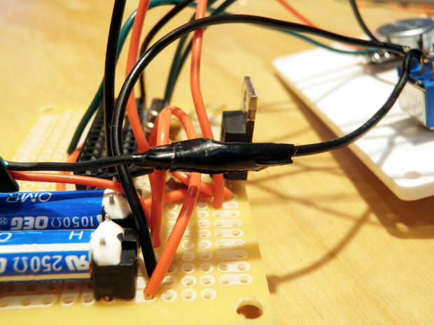 Conecte el cable rojo desde el potenciómetro a la fuente de alimentación de 5V en el tablero.