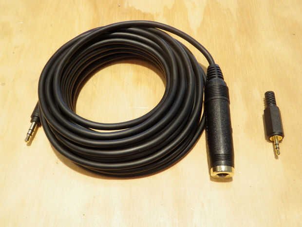 Consigue un cable estéreo. Tengo un cable de extensión 25' auriculares de Radioshack y recortar una 4' sección del centro del cable a utilizar. Voy a usar las otras dos partes del resto para futuros proyectos.