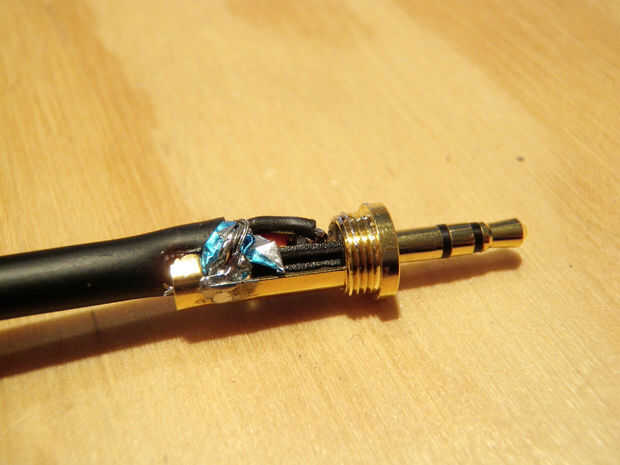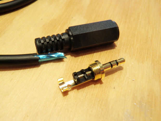 En la terminal más cercana a la actual 'plug parte suelde el cable negro de tu cable estéreo.