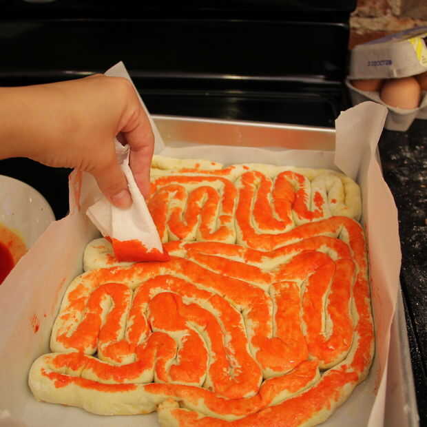 Por lo general debería utilizar una brocha de cocina para esto, pero aquí en Instructables nuestro parece que han sido comidas por el monstruo "prestado pero nunca lo pones de nuevo". Por lo tanto estoy usando una toalla de papel. Como un jefe.