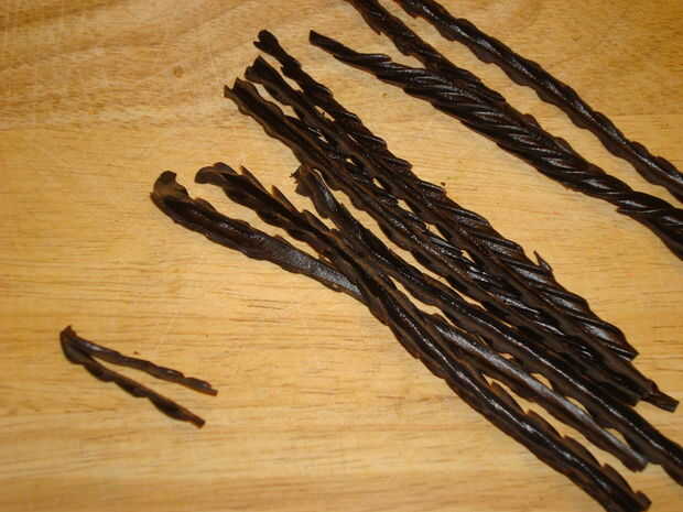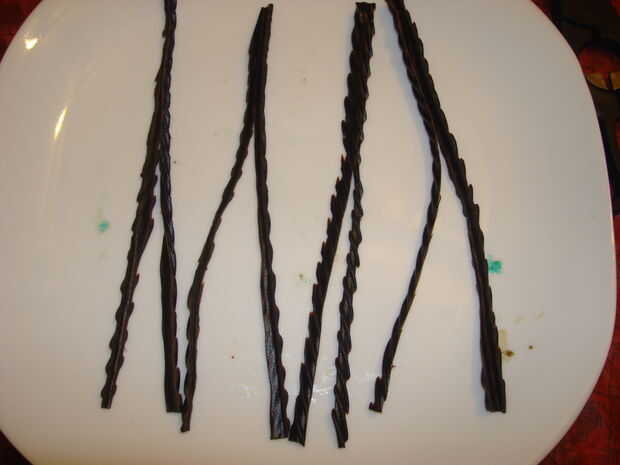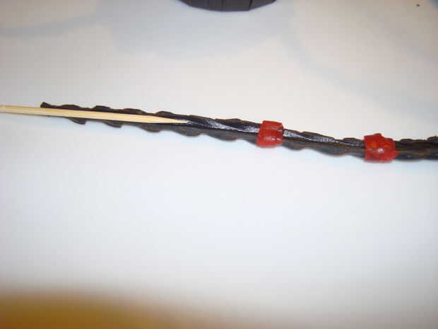 - Para las piernas cortadas el regaliz con las tijeras recorte las puntas de la regaliz de pegarse las tijeras a través del agujero final y recorte cuidadosamente en el centro para formar 2 piezas.