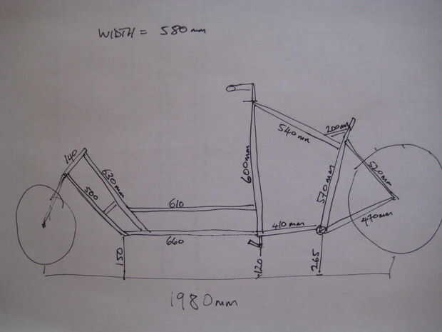 Abajo se encuentra la geometría de mi bici como está construido. Hasta ahora que el único problema con la geometría es la altura de pedalier - esto realmente no demasiado grande un trato y yo inconscientemente mantener mis pedales al pasar sobre badenes. La moto puede ser innecesariamente larga. Parece haber un poco de habitación extra entre mis rodillas y la canasta.