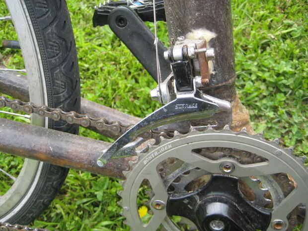 Cuanto antes usted figura hacia fuera qué desviador delantero vas a usar mejor. Me la mina como una ocurrencia tardía y sólo tienen acceso a dos de los tres anillos y terminó haciendo un cambio de montaje especial tirón superior carretera bicicleta de dos cambios diferentes. Esto es algo que eventualmente tendré que solucionar.