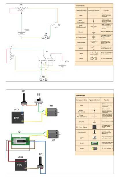 a. alambre y el interruptor del sistema de la polea de la soldadura (DPDT); potenciómetro; y el motor;