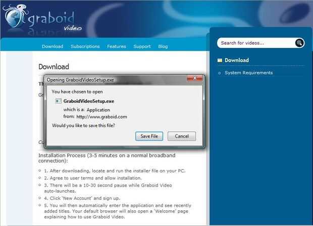 Junto con el Graboid software le pedirá para descargar un reproductor llamado VideoLAN y parece ser lo único que los vídeos se reproducirán en pero si no quieres descargarlo que no tienes que.