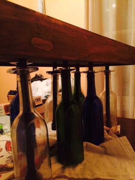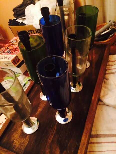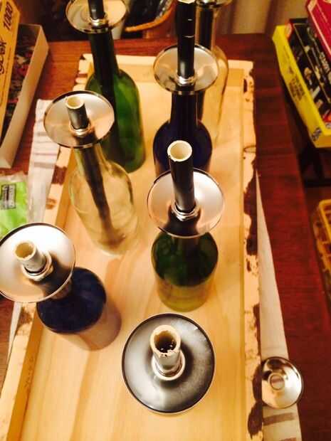 1. no voy a explicar cómo arena corte hacia abajo de las botellas de vino ya que hay toneladas de ejemplos en otras partes de este sitio, así como Youtube y otros. Yo uso una plantilla y funciona bastante bien. También cortar botella todas a la misma altura, pero que definitivamente podría añadir otro nivel de profundidad y hacer diferentes longitudes.