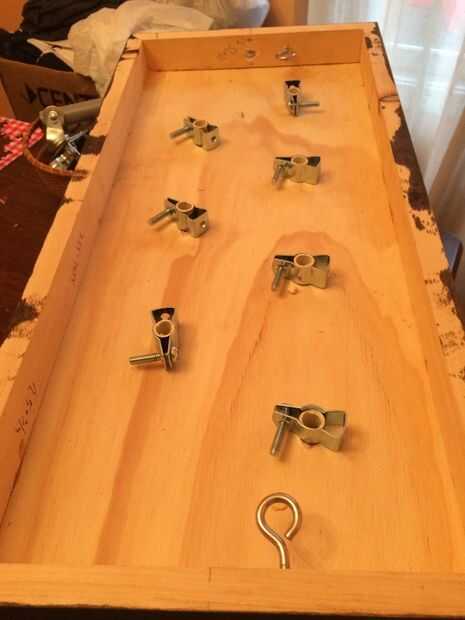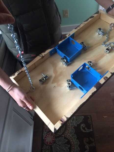 11. Pretaladre e instalar (2) ojos de tornillo (uno a cada lado) de 2" del centro. Estas se utilizarán para sostener la caja para cable.