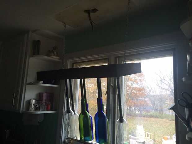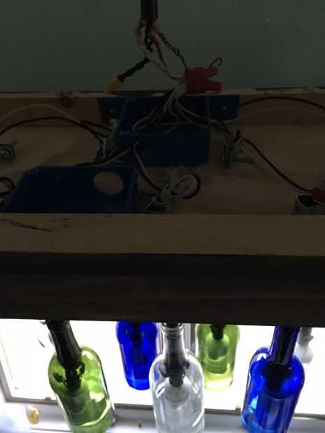 Para el alambre del luminario en su lugar, quería primero cuelgue el aparato por lo cual uno no debe mantener en su lugar (ya que es bastante pesado). Esto también sería más fácil substituir una botella si es necesario etc..