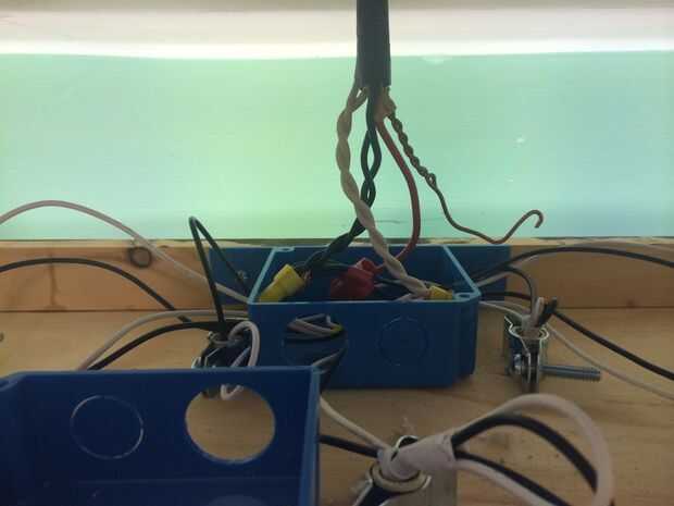 6. Si algunas de las bombillas colgando más deseada cuando se tiró a la caja, tirar a la altura deseada, luego se superponen los cables y Enrolle cinta aislante alrededor de la parte superior para mantener en su lugar.