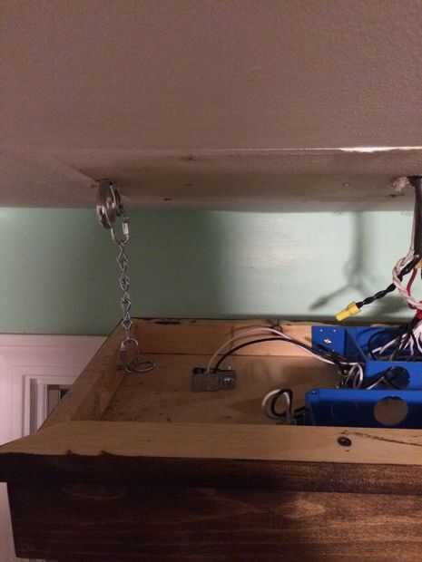 2. usando los enlaces y cadena, fije los ganchos en la caja, a los ganchos en el techo.