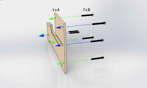 Tomar 7 x tema B y lugar a través de los orificios de la pieza 1 x a.