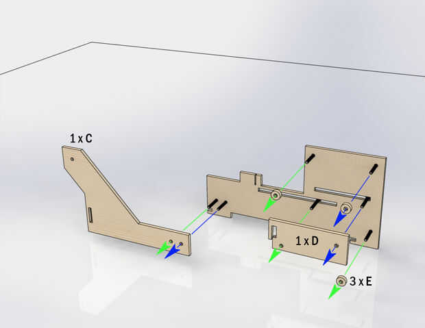 Paso 2: Paso 2: piezas 1 C x / 1 x D / 3 xE