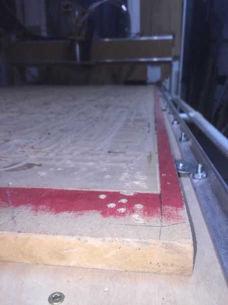 ¿Necesita cuadrar la pieza perfectamente al borde de la mesa? Medir de los rieles de metal en el borde - ya que el CNC ejecuta en estos carriles pasan a ser la línea recta de referencia que tenemos.