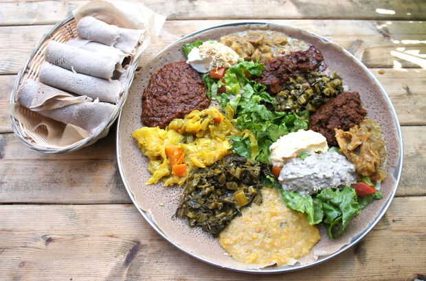 Si usted nunca ha tenido comida etiope antes, recomiendo encontrar un restaurante muy valorado en su área y comenzar con un combo de verduras y carne (la mayoría de los restaurantes ofrece una). Esto le dará un sabor perfecto de los platos más populares.