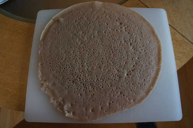 Yo enseñé cómo hacer injera hace casi cinco años porque vivía en una isla con ningún restaurantes etíopes. Esta receta es infalible y delicioso. Práctica hace la perfección, por lo que no se preocupe si su primer trozo de injera no sale perfecto. Por la tercera, a ser un profesional.
