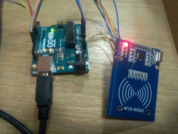 La tarjeta de RFID leída por el lector enviará los datos a la microcontroller(Arduino). Los dos aparatos se hicieron para comunicarse entre sí con la ayuda de una interfaz SPI (MISO y MOSI).