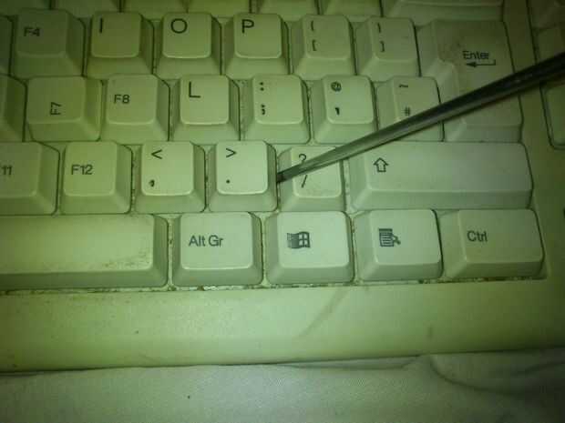 > tomar el destornillador de cabeza plana e inserte entre la clave que desea hacia fuera y el a su lado.