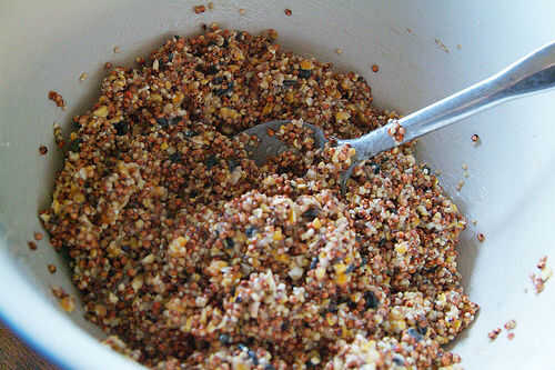 ingredientes:6-7-tazas de harina de maíz (2.5-3#)Tarro de mantequilla de maní (18 oz).Manteca (para llenar la jarra de PB de 18 oz.)2 tazas negras semillas de girasol del aceiteComprar los ingredientes baratos, de marca para esto.Herramientas y mater