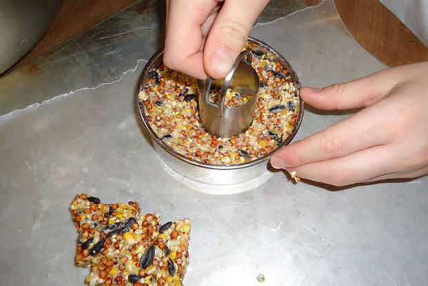 ingredientes:6-7-tazas de harina de maíz (2.5-3#)Tarro de mantequilla de maní (18 oz).Manteca (para llenar la jarra de PB de 18 oz.)2 tazas negras semillas de girasol del aceiteComprar los ingredientes baratos, de marca para esto.Herramientas y mater