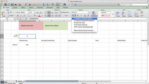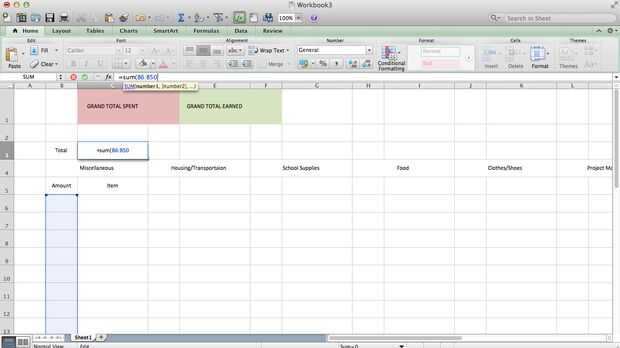 Consejo rápido con funciones: Recuerde siempre escribir el igual delante de la función (por ejemplo. " = sum( "). Y si te quedas atascado en la función (como en cuando intenta haga clic en hacia fuera, sin querer agregar otra celda la función, la barra de funciones dirá algo como "= suma (C4:C70 + L18)" Si seleccionaste L18) sólo tiene que pulsar enter para salir hacia fuera. Pulsar sobre la celda con la función y haga clic en la barra de funciones para editar, antes de presionar enter para salir otra vez. De lo contrario lo que hace clic en el ratón se añadirá a la función.