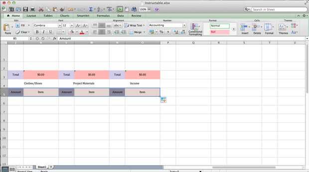 Introducción a Excel: costo Tracker (15 / 23 paso)