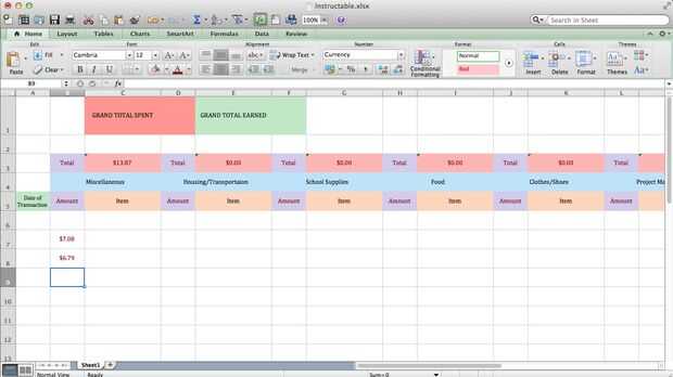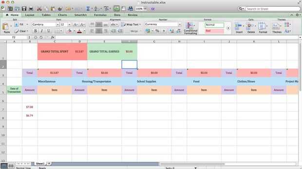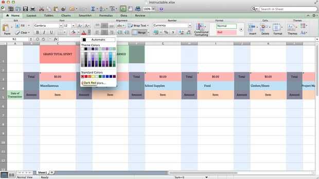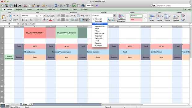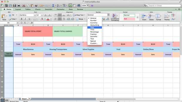 Siguiente paso es cambiar el formato de las celdas, para que los números de la columna de fecha se formatean automáticamente a un formato de fecha, y las columnas de cantidad se introducen automáticamente en el formato de $0.00 dólares (y en rojo).