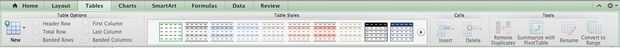 En la ficha tablas, puede ver algunas funciones útiles (no tanto como el hogar otra vez, pero todavía útil), entre los que destacan:
