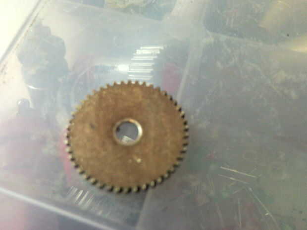 2 engranajes de bronce pequeño. (Raspado de viejos relojes lavado o contadores de tiempo de máquina secadora) Libre de costo