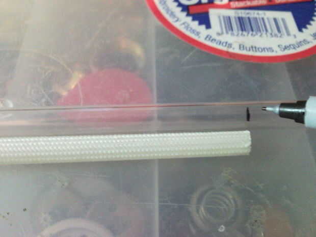 El siguiente es un tamaño de la manga de fuego, marcado con un rotulador de punta fina.