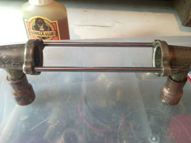 Ahora que la base y el tubo están listos podemos pasar a las barras de guía de acero inoxidable, estas barras salieron de quemado hasta reproductores de DVD y CD el ajuste los orificios de la base perfectamente. Diapositiva en y gorila del pegamento en lugar, luego deslice la otra base para soporte de las barras de guía hasta el uno final se ha secado completamente.