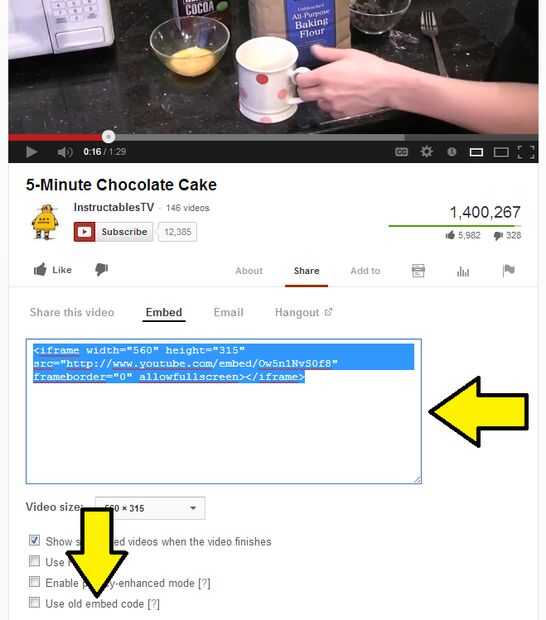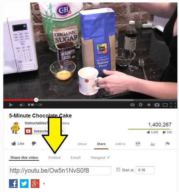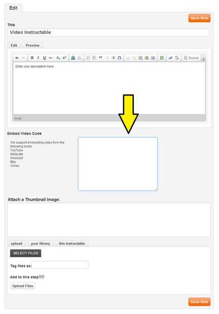 - Golpe "embed" y copia y pega el video incrustar código en la casilla "Embed Video Code" al crear tu vídeo Instructable.