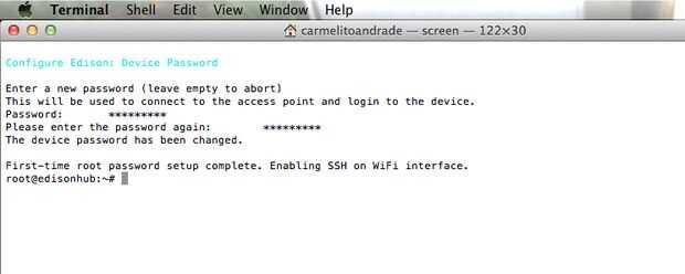 Para crear una contraseña, en el tipo de línea de comandos en configure_edison, contraseña