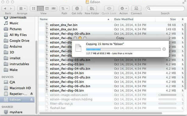 Paso 3: Conectar tu Mac Intel Edison y descomprimir la imagen Yotco a Edison Drive