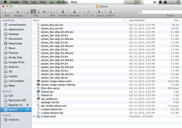 Haga clic en la unidad de Edison para validar que se copian los archivos de las imágenes de Yocto como se muestra en la tercera captura de pantalla anterior.