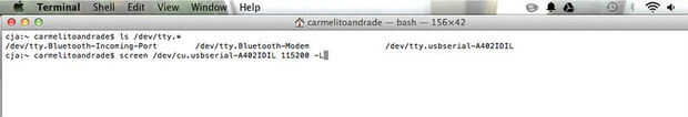 entonces debe ser tipo 115200-L, el comando final (en mi caso pantalla /dev/tty.usbserial-A402IDIL 115200 – L) como se muestra en la foto de arriba
