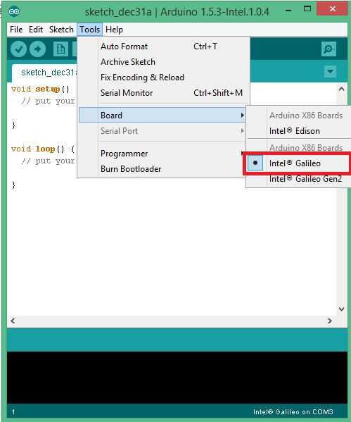 7. ahora tenemos que IDE de Arduino punto nuestro Galileo. De herramientas bajo