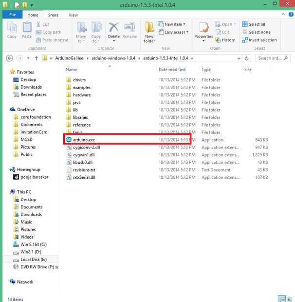 6. Ejecute Arduino.exe para abrir el IDE de Arduino para Galileo.