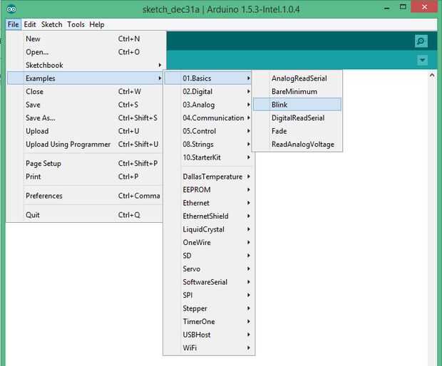 IDE de Arduino tiene muchos ejemplos que podemos utilizar, vamos a ejecutar uno de estos ahora.