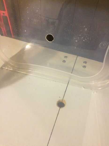Después de hacer esto, usted necesitará un agujero en la parte inferior de la cama de crecimiento para el desagüe. Mismo procedimiento de perforación como antes, sólo tratar de conseguir como cerca del centro de la bandeja que puede.