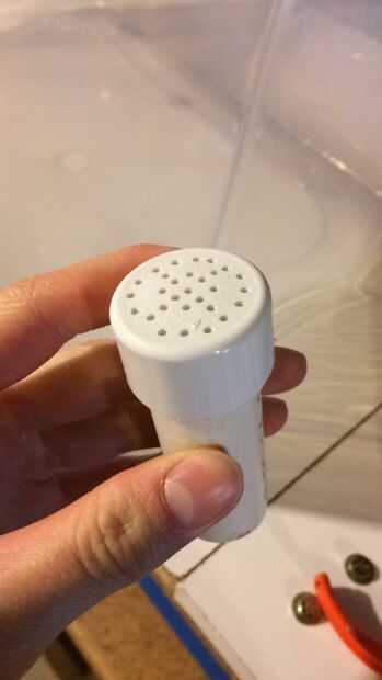 Hacer una pantalla de un casquillo de extremo, es cierto que no es el enfoque más eficaz. Residuos de los medios de comunicación crece y otra mugre obstrucción los pequeños agujeros fácilmente, y ahora suele raspar la parte superior de la pantalla con un destornillador largo a diario. No un enorme tratar, como lleva un diez segundos extra cuando alimentar a los peces, pero molesto sin embargo. Si alguien puede pensar en una solución mejor, me encantaría oírlo!