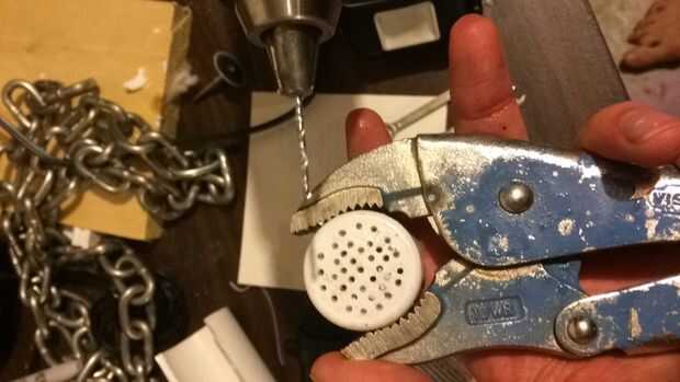 Para la pantalla en el desagüe de la cama de crecimiento, perforé muchos pequeños agujeros en una tapa PVC. Esto puede tomar algún ensayo y error para obtener el número adecuado de agujeros. El desagüe debe fluir suficiente agua para drenar completamente en el ciclo de drenaje de 45 minutos, pero no tanto que la cama nunca completamente llena. Inicialmente, había perforado una cantidad conservadora de agujeros y más tarde es necesario hacer más. Revisa las imágenes para tener una idea de cuántos eran necesarios. Esto hubiera sido mejor prueba antes en lugar de sacar la pantalla a realizar cambios en el sistema totalmente instalado.
