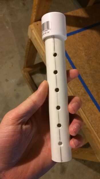 Para finalizar la barra de aireación, pop orificios en una línea cada pulgada o dos en su trozo de tubería. Usé un 1/4" bits punto de brad. La punta afilada pica en el plástico, eliminando el poco caminar o hacer una chuleta para iniciar el agujero.