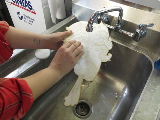 Después de que hayas grabado tu papel de acuarela, seguirá habiendo un montón de partículas de humo en el papel. No puede parecer como mucho, pero cuando se consigue pintando a smoodge todo. Así que es momento de lavar!