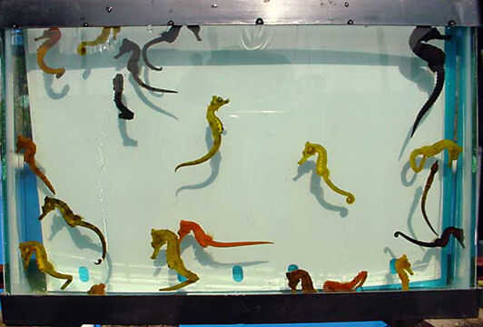 Salvaje cogido caballitos de mar son exactamente eso--tomado del salvaje mar. Muchos no sobrevivirán el viaje para estar en un tanque de la tienda, y los que probablemente tienen una vida corta. Como con muchos otros animales, caballitos de mar capturados salvajes no ajustan al cautiverio bien. A menudo rehúsan comer y definitivamente no estar interesado en alimentos congelados (muertos). Ellos también pueden albergar parásitos, que pueden existir en niveles tolerables, mientras que en el océano pero entonces fuera de control cuando la tensión de viajes cambia de puesto el equilibrio de su salud.