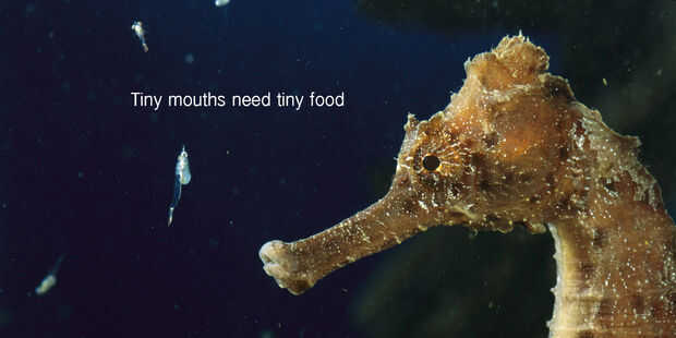 Copépodos en vivo-- copépodos son pequeños organismos grandes para peces serán bocas muy pequeñas, como los caballitos de mar. Estos serían una parte muy importante de la pirámide de alimentos si tuvieras caballitos de mar enanos, que quizá son 1,5 pulgadas de alto. Tiendas que venden Marina suministros y alimentos de pescado venden en botellas de squirt, que proporcionan indicaciones sobre cómo mantenerlos. Un tipo popular es "Tigger Pods" supongo llamado tal como son naranja brillante y la forma en que mueven es tipo de hinchable. yo nunca estos caballitos de mar, pero puedo informar que trabajaron bien para mi muy viejo y meticulosos gobio mandarín.